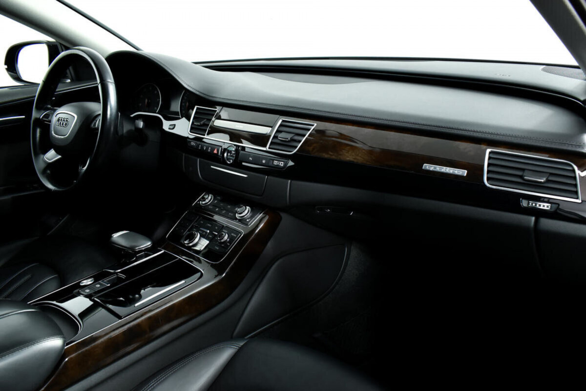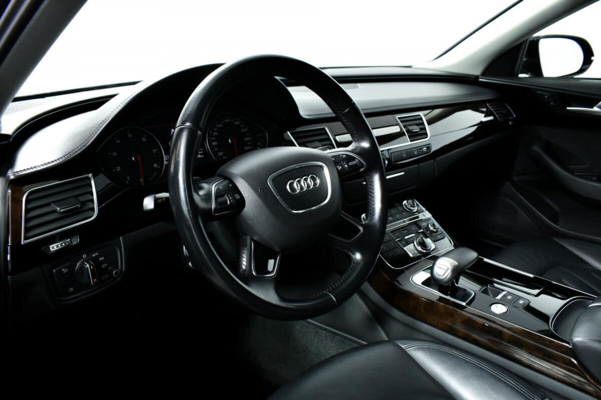 В продаже автомобиль серый Audi A8 2015 года выпуска, с автоматическая коробкой переключения передач и полный приводом. Состояние автомобиля, по оценке сервиса Carwise, - отличное: без дефектов по кузову. Ходовая часть не требует вмешательств. Салон ухожен - не прокуренный. По электрической части все исправно работает. Не участвовал в ДТП. Во владении был у одного хозяина, два комплекта ключей. Имеется полный комплект документов (оригинал).