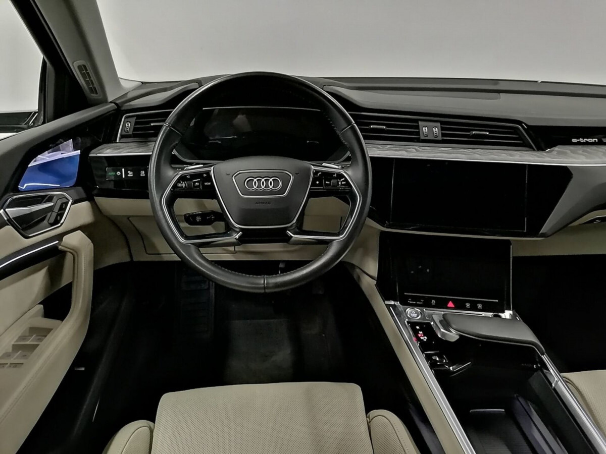 В продаже автомобиль серый Audi e-tron 2020 года выпуска, с автоматическая коробкой переключения передач и полный приводом. Состояние автомобиля, по оценке сервиса Carwise, - отличное: без дефектов по кузову. Ходовая часть не требует вмешательств. Салон ухожен - не прокуренный. По электрической части все исправно работает. Не участвовал в ДТП. Во владении был у одного хозяина, два комплекта ключей. Имеется полный комплект документов (оригинал).