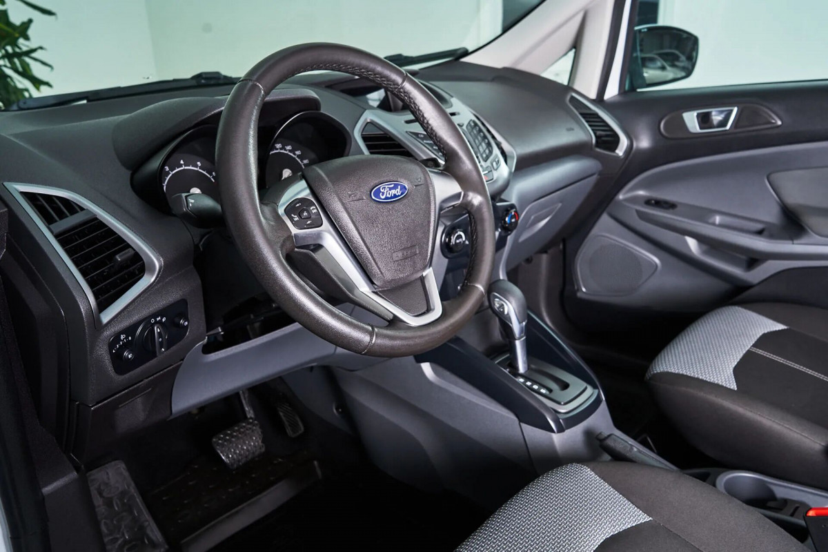 В продаже автомобиль серый Ford EcoSport 2017 года выпуска, с автомат робот коробкой переключения передач и передний приводом. Состояние автомобиля, по оценке сервиса Carwise, - отличное: без дефектов по кузову. Ходовая часть не требует вмешательств. Салон ухожен - не прокуренный. По электрической части все исправно работает. Не участвовал в ДТП. Во владении был у одного хозяина, два комплекта ключей. Имеется полный комплект документов (оригинал).