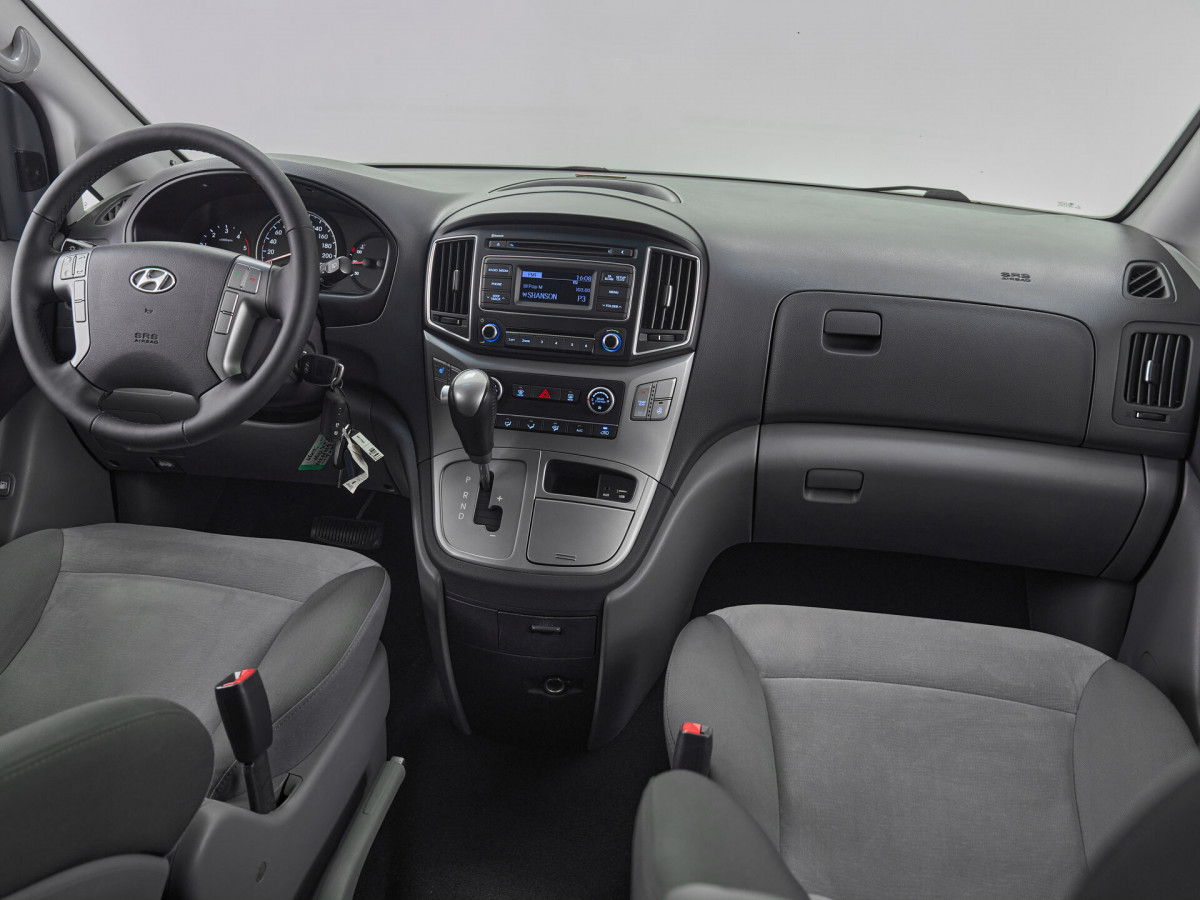 В продаже автомобиль серый Hyundai H-1 2015 года выпуска, с автоматическая коробкой переключения передач и задний приводом. Состояние автомобиля, по оценке сервиса Carwise, - отличное: без дефектов по кузову. Ходовая часть не требует вмешательств. Салон ухожен - не прокуренный. По электрической части все исправно работает. Не участвовал в ДТП. Во владении был у одного хозяина, два комплекта ключей. Имеется полный комплект документов (оригинал).