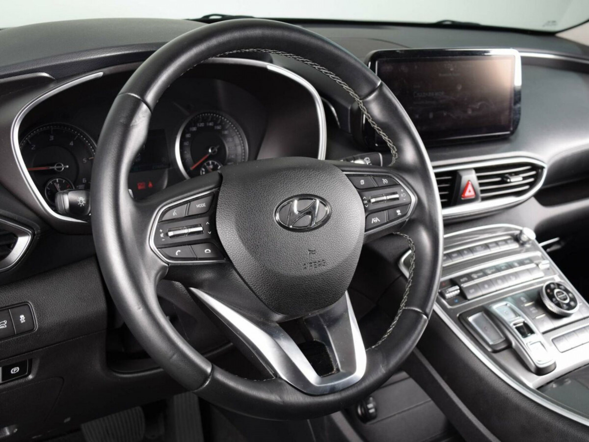 В продаже автомобиль серый Hyundai Santa Fe 2021 года выпуска, с автомат робот коробкой переключения передач и полный приводом. Состояние автомобиля, по оценке сервиса Carwise, - отличное: без дефектов по кузову. Ходовая часть не требует вмешательств. Салон ухожен - не прокуренный. По электрической части все исправно работает. Не участвовал в ДТП. Во владении был у одного хозяина, два комплекта ключей. Имеется полный комплект документов (оригинал).