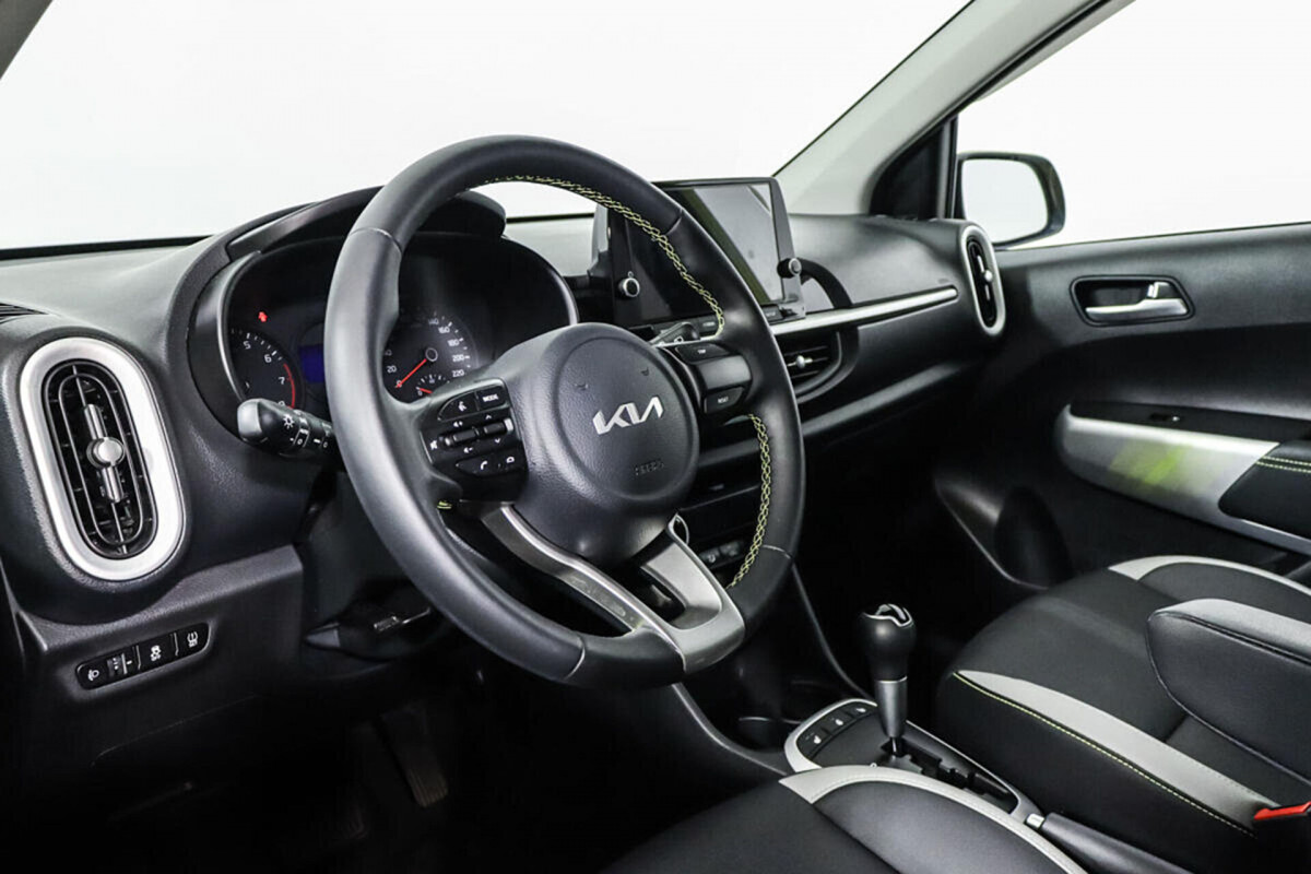 В продаже автомобиль серый Kia Picanto 2022 года выпуска, с автоматическая коробкой переключения передач и передний приводом. Состояние автомобиля, по оценке сервиса Carwise, - отличное: без дефектов по кузову. Ходовая часть не требует вмешательств. Салон ухожен - не прокуренный. По электрической части все исправно работает. Не участвовал в ДТП. Во владении был у одного хозяина, два комплекта ключей. Имеется полный комплект документов (оригинал).