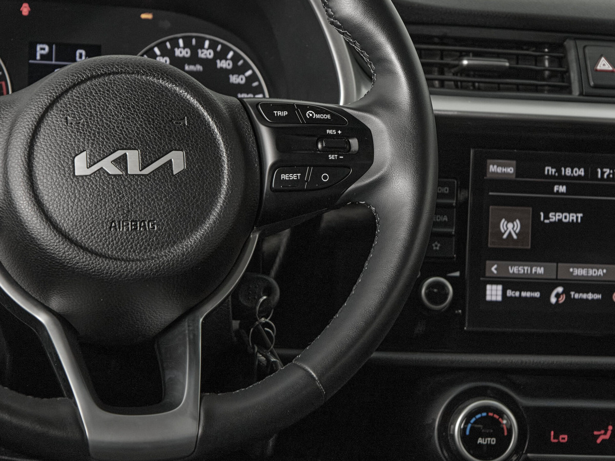 В продаже автомобиль серый Kia Rio 2021 года выпуска, с автоматическая коробкой переключения передач и передний приводом. Состояние автомобиля, по оценке сервиса Carwise, - отличное: без дефектов по кузову. Ходовая часть не требует вмешательств. Салон ухожен - не прокуренный. По электрической части все исправно работает. Не участвовал в ДТП. Во владении был у одного хозяина, два комплекта ключей. Имеется полный комплект документов (оригинал).