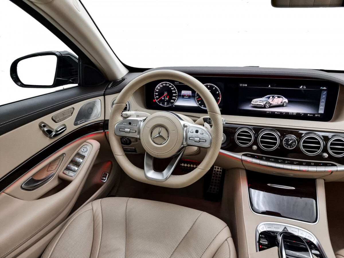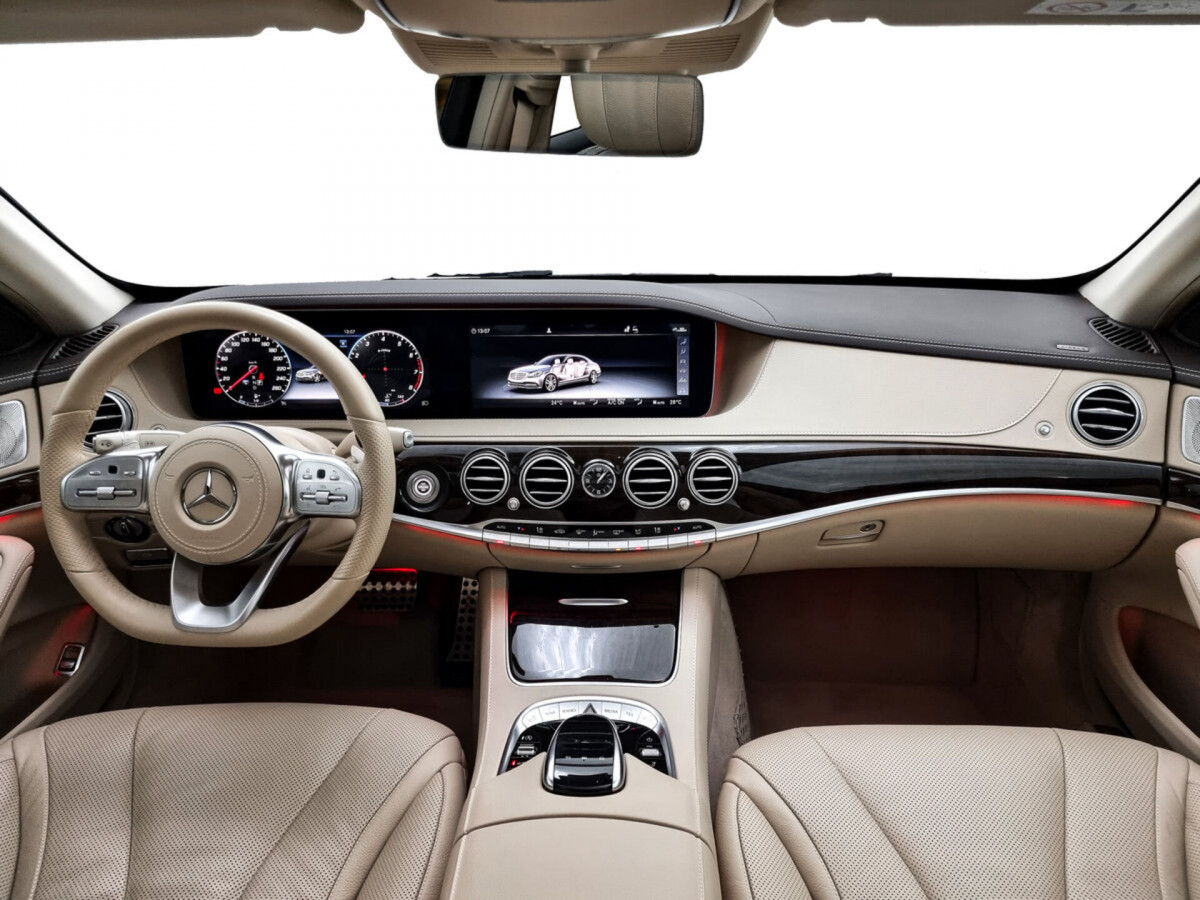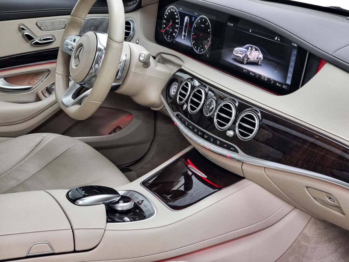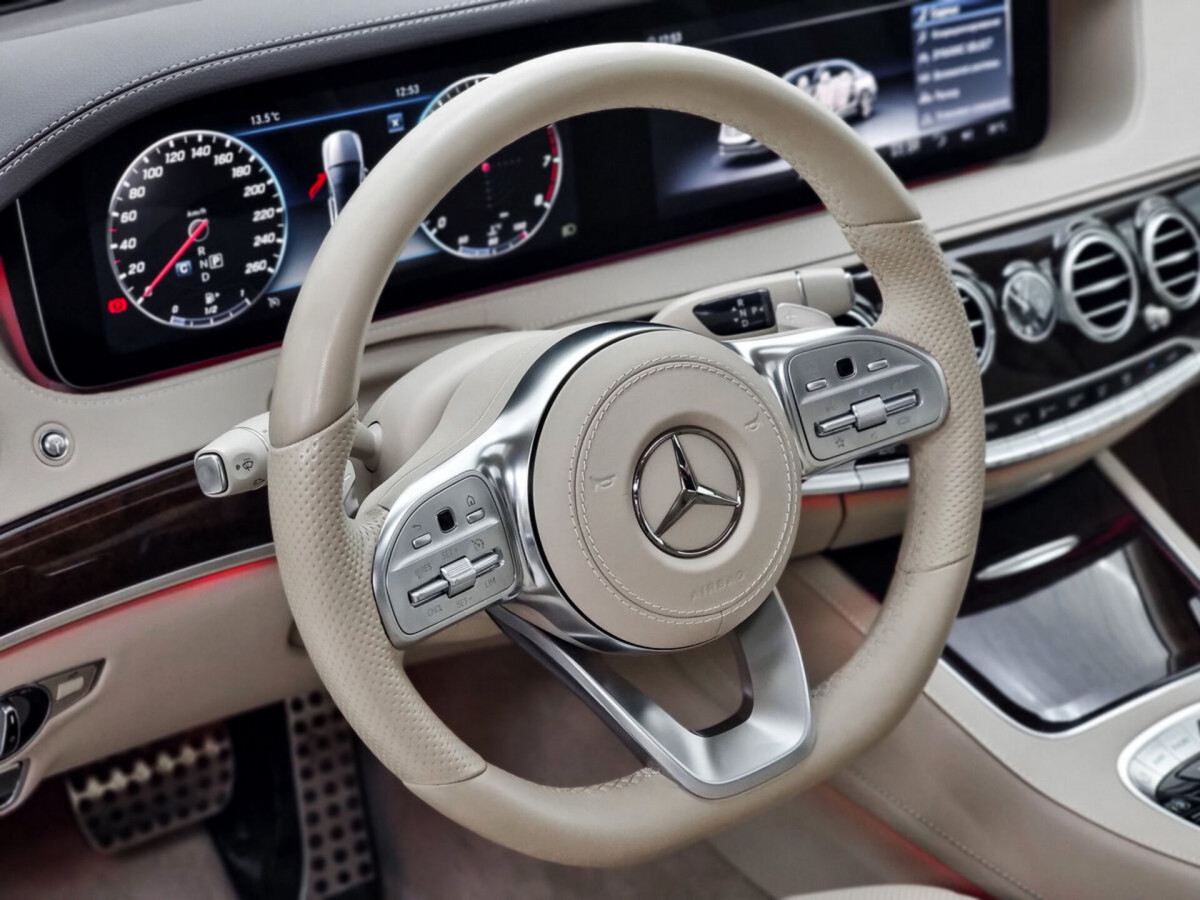 В продаже автомобиль серый Mercedes-Benz S-Класс 2019 года выпуска, с автоматическая коробкой переключения передач и полный приводом. Состояние автомобиля, по оценке сервиса Carwise, - отличное: без дефектов по кузову. Ходовая часть не требует вмешательств. Салон ухожен - не прокуренный. По электрической части все исправно работает. Не участвовал в ДТП. Во владении был у одного хозяина, два комплекта ключей. Имеется полный комплект документов (оригинал).