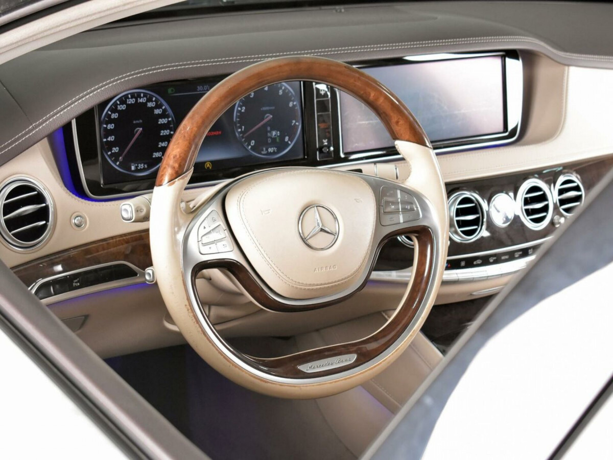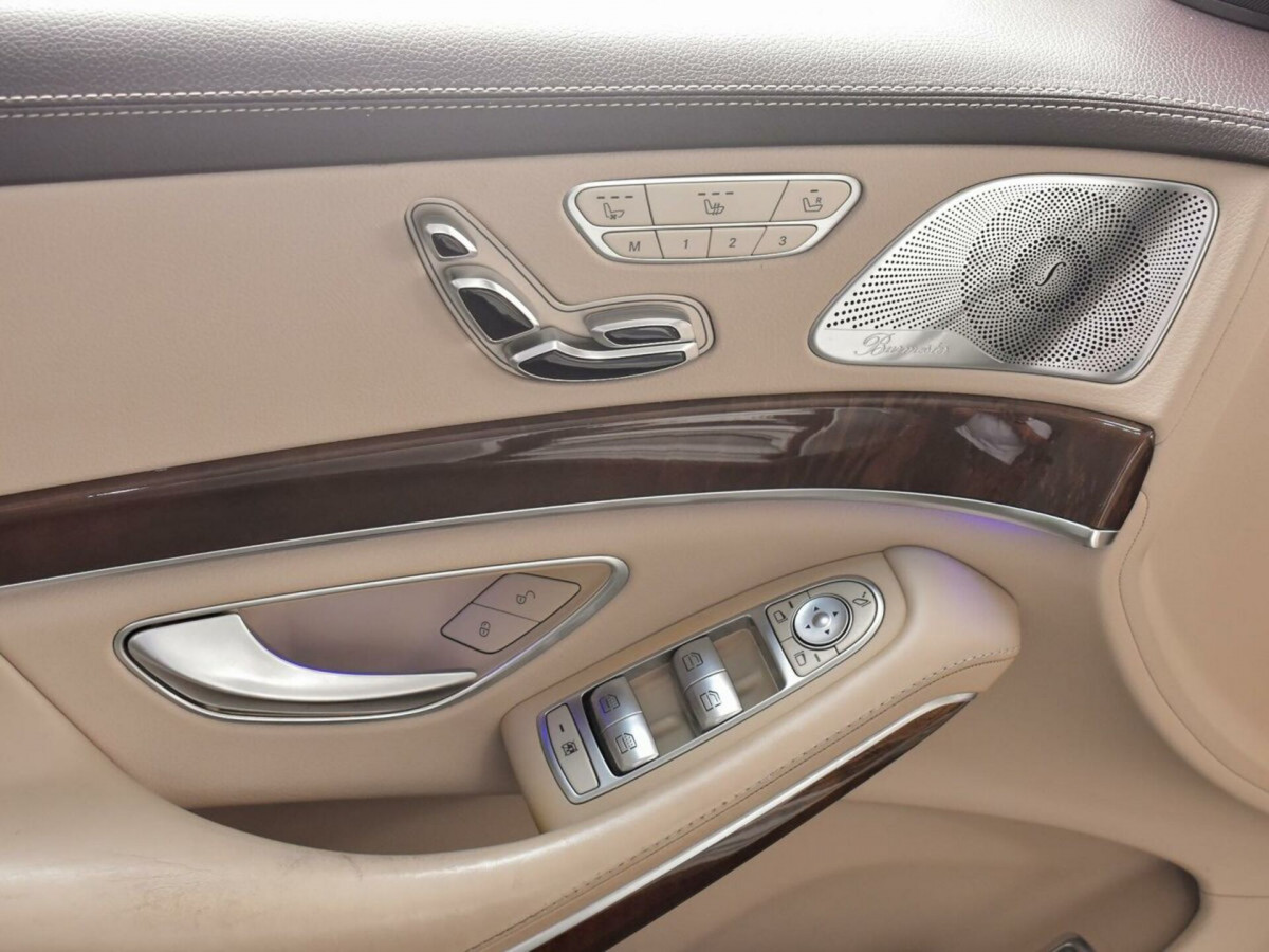 В продаже автомобиль серый Mercedes-Benz S-Класс 2014 года выпуска, с автоматическая коробкой переключения передач и полный приводом. Состояние автомобиля, по оценке сервиса Carwise, - отличное: без дефектов по кузову. Ходовая часть не требует вмешательств. Салон ухожен - не прокуренный. По электрической части все исправно работает. Не участвовал в ДТП. Во владении был у одного хозяина, два комплекта ключей. Имеется полный комплект документов (оригинал).