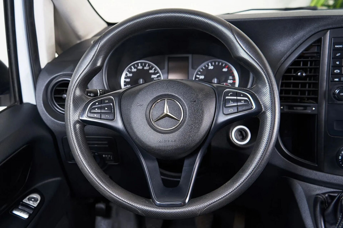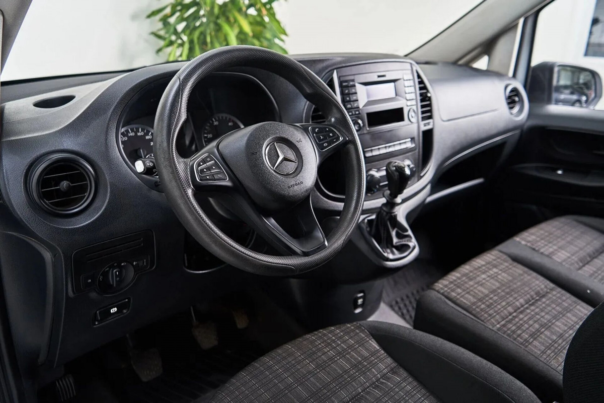 В продаже автомобиль серый Mercedes-Benz Vito 2015 года выпуска, с механическая коробкой переключения передач и передний приводом. Состояние автомобиля, по оценке сервиса Carwise, - отличное: без дефектов по кузову. Ходовая часть не требует вмешательств. Салон ухожен - не прокуренный. По электрической части все исправно работает. Не участвовал в ДТП. Во владении был у одного хозяина, два комплекта ключей. Имеется полный комплект документов (оригинал).
