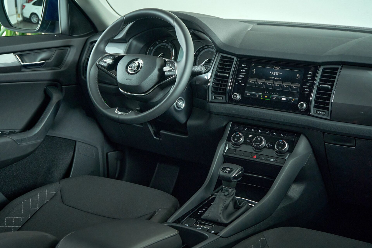 В продаже автомобиль серый Skoda Kodiaq 2021 года выпуска, с автомат робот коробкой переключения передач и полный приводом. Состояние автомобиля, по оценке сервиса Carwise, - отличное: без дефектов по кузову. Ходовая часть не требует вмешательств. Салон ухожен - не прокуренный. По электрической части все исправно работает. Не участвовал в ДТП. Во владении был у одного хозяина, два комплекта ключей. Имеется полный комплект документов (оригинал).