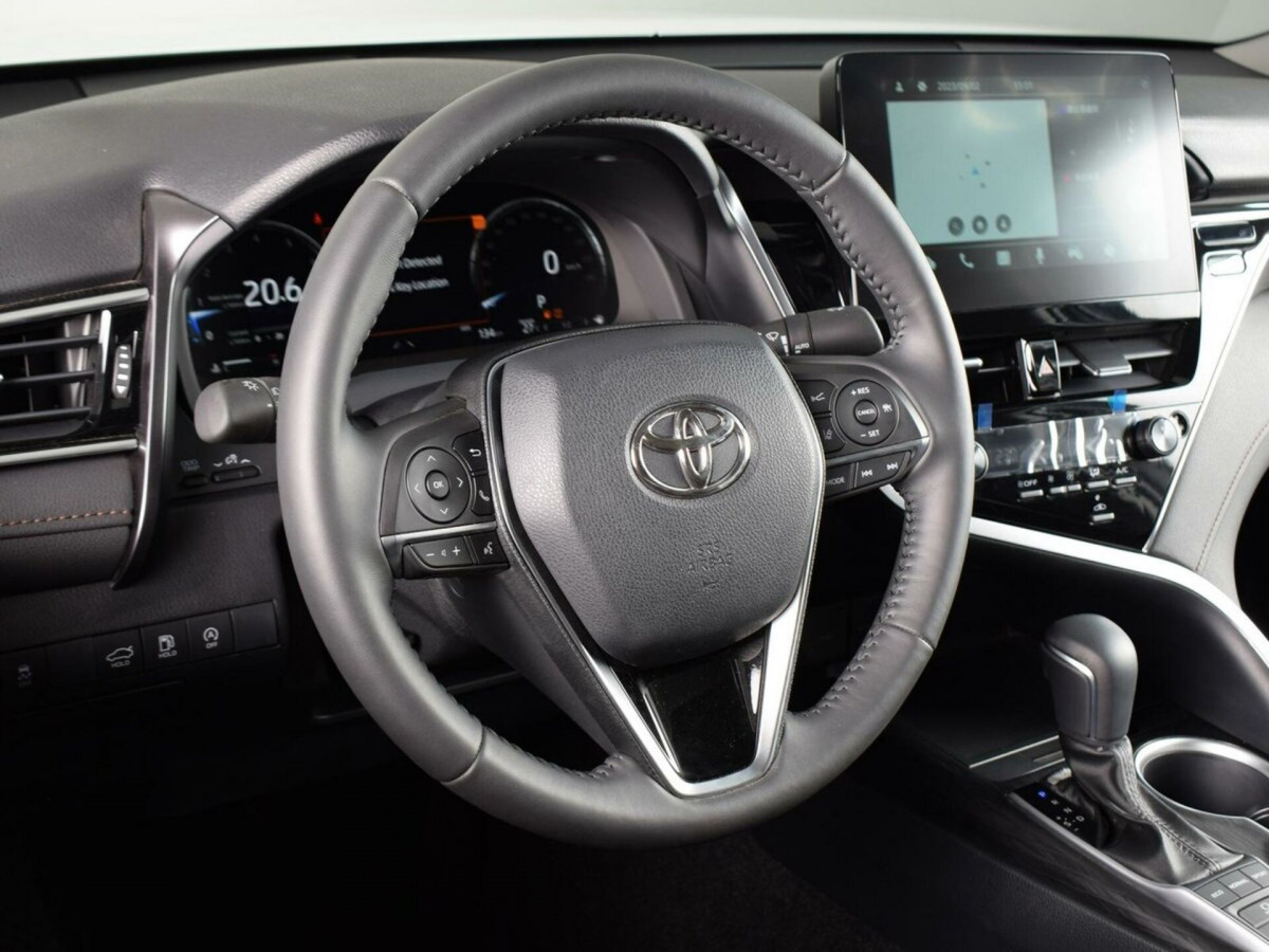 В продаже автомобиль серый Toyota Camry 2023 года выпуска, с автоматическая коробкой переключения передач и передний приводом. Состояние автомобиля, по оценке сервиса Carwise, - отличное: без дефектов по кузову. Ходовая часть не требует вмешательств. Салон ухожен - не прокуренный. По электрической части все исправно работает. Не участвовал в ДТП. Во владении был у одного хозяина, два комплекта ключей. Имеется полный комплект документов (оригинал).