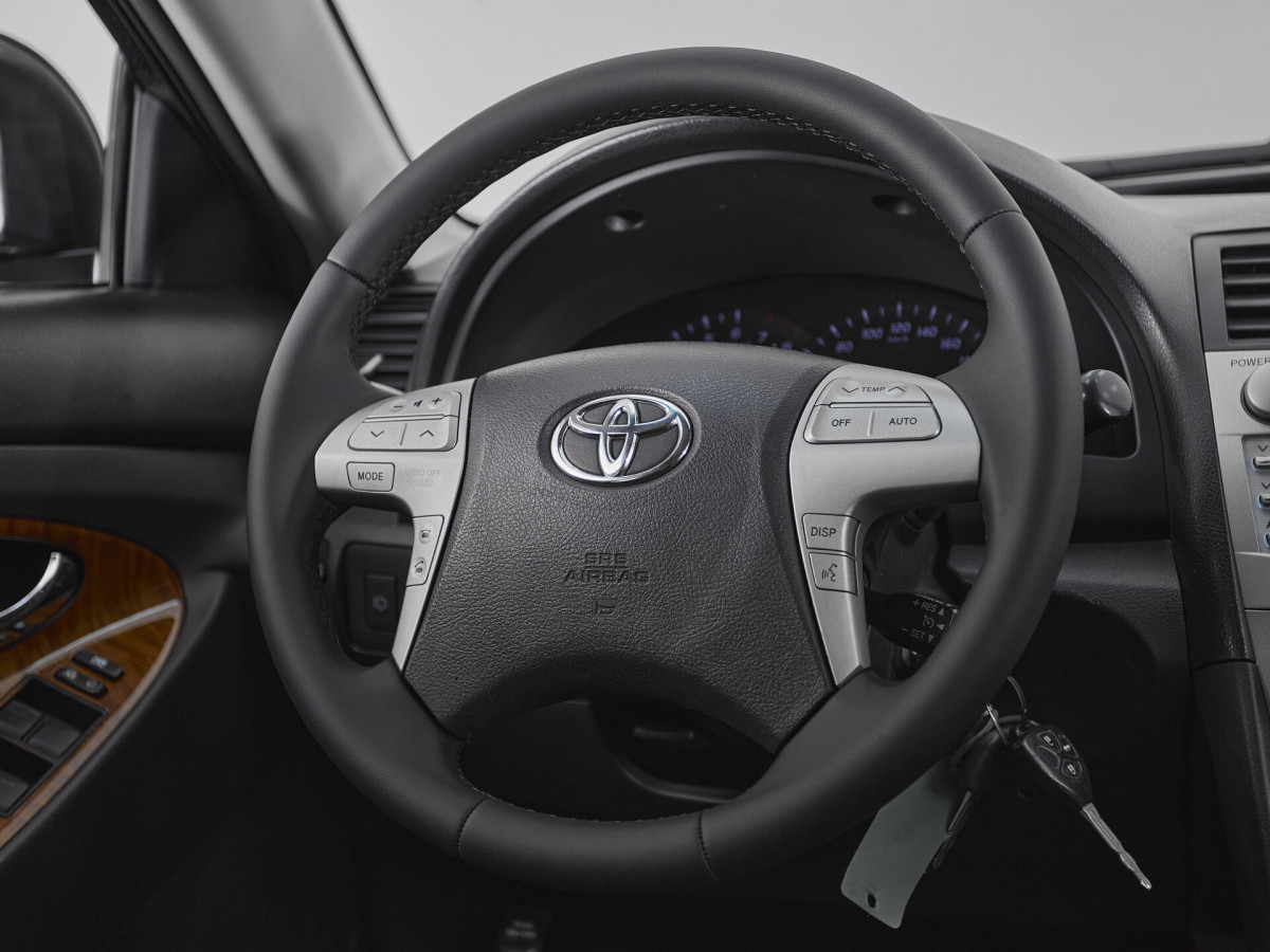 В продаже автомобиль серый Toyota Camry 2009 года выпуска, с автоматическая коробкой переключения передач и передний приводом. Состояние автомобиля, по оценке сервиса Carwise, - отличное: без дефектов по кузову. Ходовая часть не требует вмешательств. Салон ухожен - не прокуренный. По электрической части все исправно работает. Не участвовал в ДТП. Во владении был у одного хозяина, два комплекта ключей. Имеется полный комплект документов (оригинал).