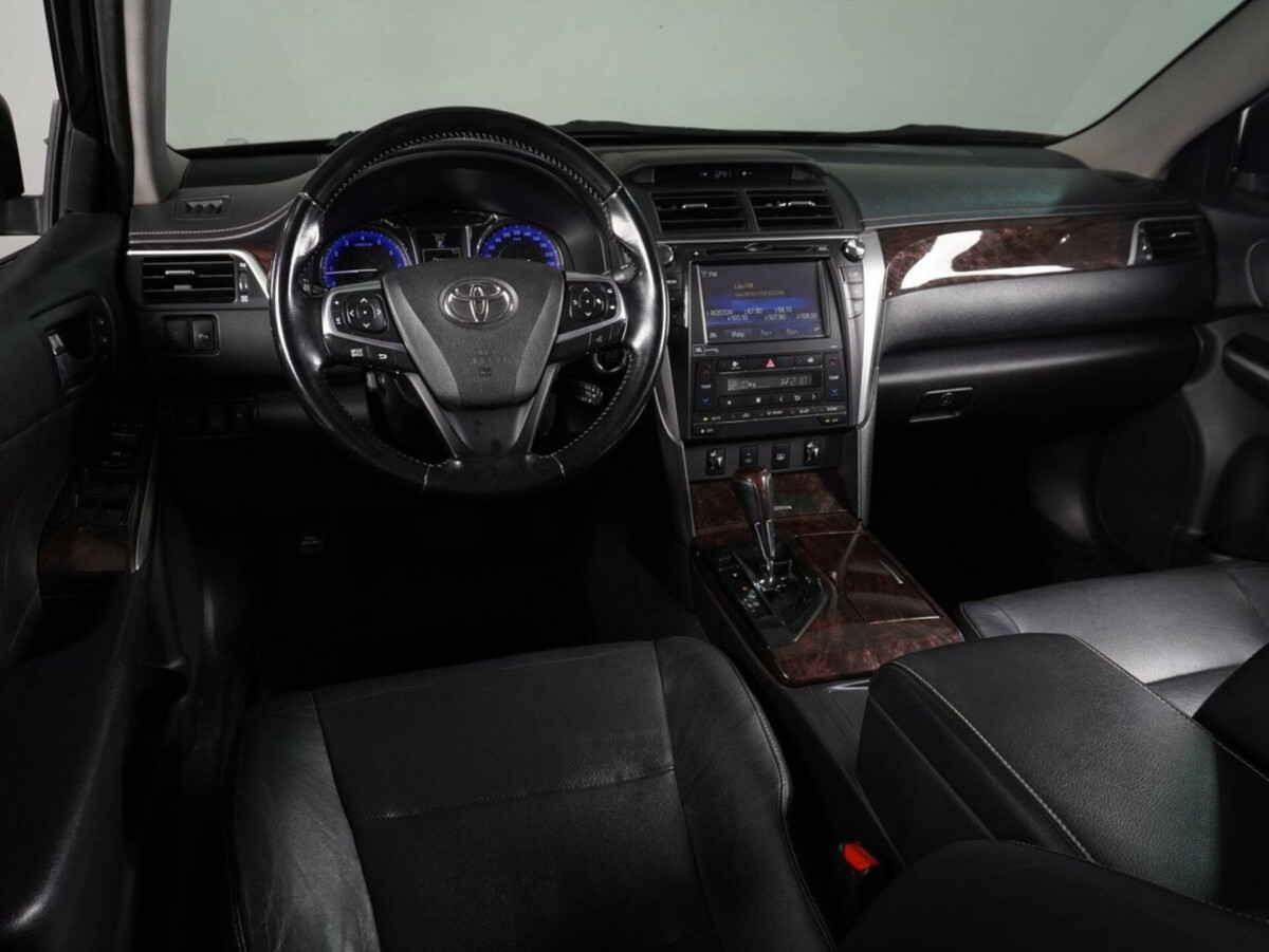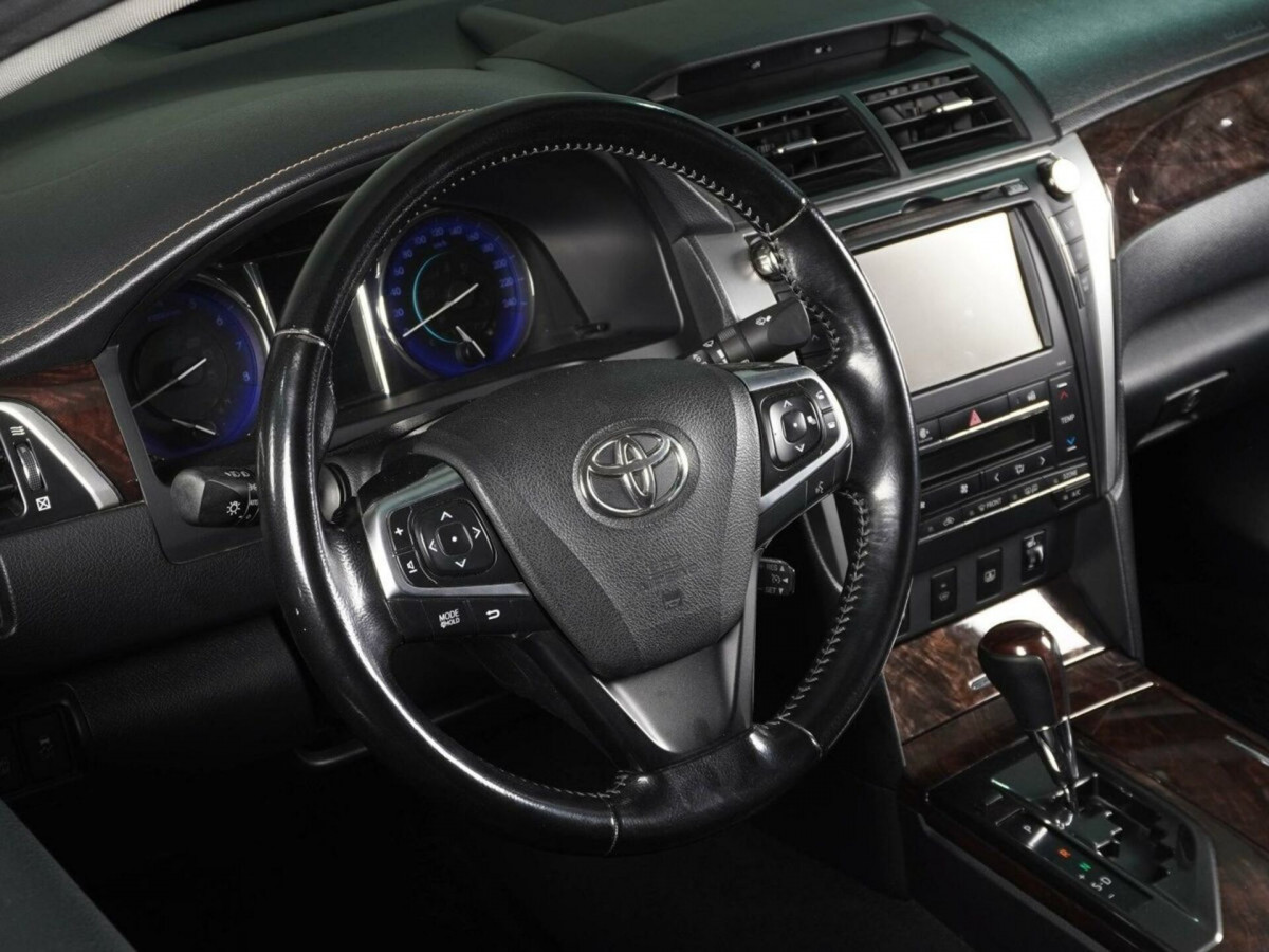 В продаже автомобиль серый Toyota Camry 2015 года выпуска, с автоматическая коробкой переключения передач и передний приводом. Состояние автомобиля, по оценке сервиса Carwise, - отличное: без дефектов по кузову. Ходовая часть не требует вмешательств. Салон ухожен - не прокуренный. По электрической части все исправно работает. Не участвовал в ДТП. Во владении был у одного хозяина, два комплекта ключей. Имеется полный комплект документов (оригинал).