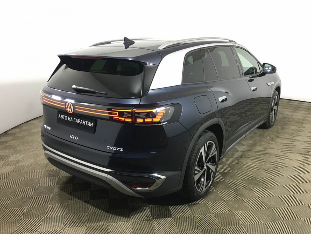 В продаже автомобиль серый Volkswagen ID.6 2022 года выпуска, с автоматическая коробкой переключения передач и задний приводом. Состояние автомобиля, по оценке сервиса Carwise, - отличное: без дефектов по кузову. Ходовая часть не требует вмешательств. Салон ухожен - не прокуренный. По электрической части все исправно работает. Не участвовал в ДТП. Во владении был у одного хозяина, два комплекта ключей. Имеется полный комплект документов (оригинал).